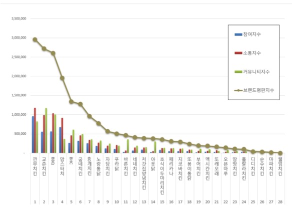 치킨 전문점 브랜드평판 11월 1위 깐부치킨, 2위 교촌치킨, 3위 BBQ